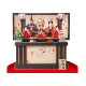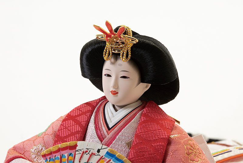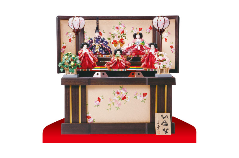 桜の刺繍が美しい屏風に、焼桐の収納飾りを合わせた人気のお雛様。三人官女付きの華やかなセットです。