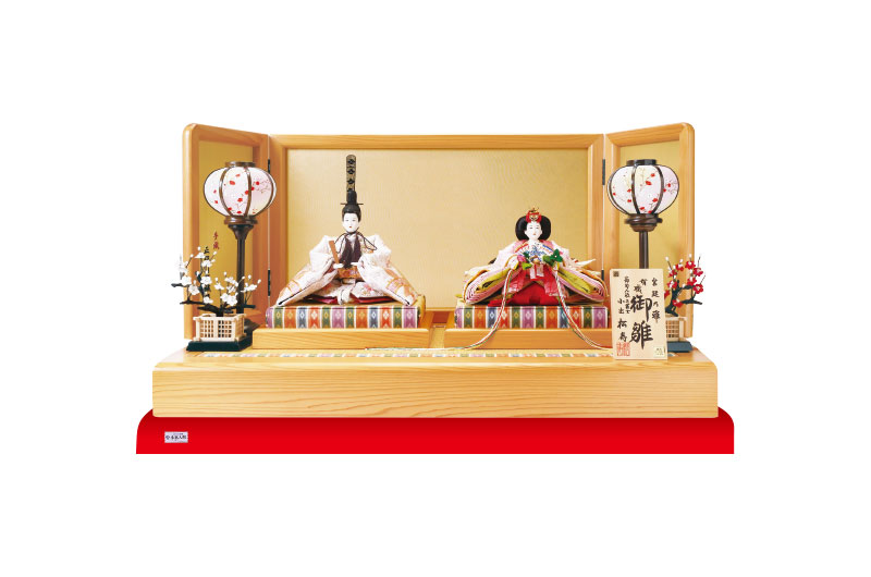 No. 1311D 京十一番親王 金彩京刺繍 高野槇平台飾り セット価格 281,600円(税込) [サイズ]間口75cm×奥行40cm×高さ41cm 希少な高野槇の台屏風枠を用い、上品で豪華なお雛様飾りに仕上げました。 商品詳細はこちら