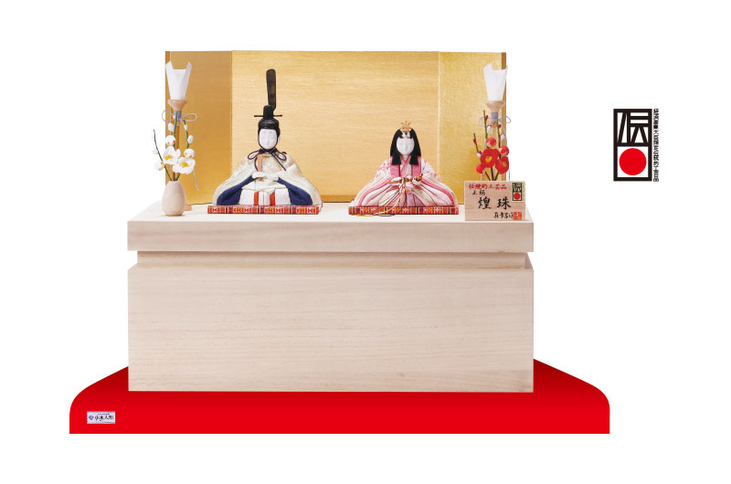 シンプルな金屏風と組み合わせた、コンパクトサイズの収納飾りです。