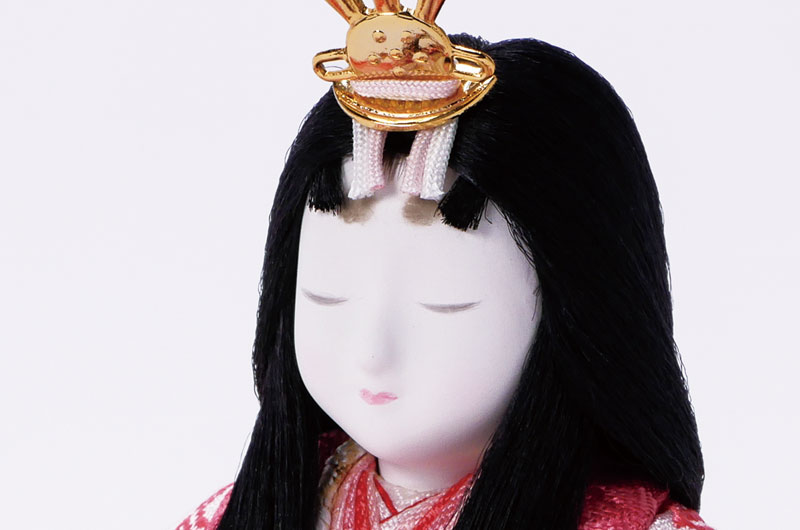 丸みを帯びたやさしいフォルムに上品な衣裳のお雛様。