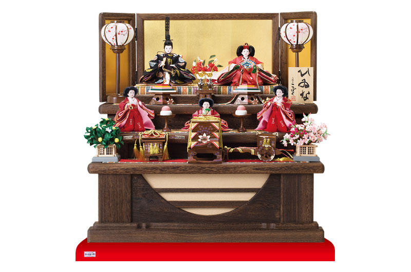 No. 2992A 京十一番親王柳官女付 焼桐三段飾り セット価格 224,400円(税込) [サイズ]間口70cm×奥行59cm×高さ69cm 金沢箔の屏風に、有職文様のお雛さまを配した、重厚感のあるコンパクトな三段飾りです。 商品詳細はこちら