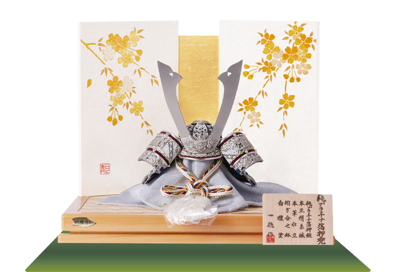 パステルカラー兜飾り No. 333 プラチナ箔兜 セット価格 97,680円(税込) [サイズ]間口40cm×奥行30cm 源平合戦の時代に用いられた兜をモチーフに、現代の暮らしに馴染む色合いで仕立てた兜飾りです。 商品詳細はこちら