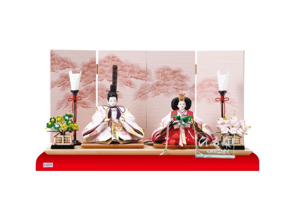 【商品紹介】淡いピンクの屏風がかわいいコンパクト親王飾り