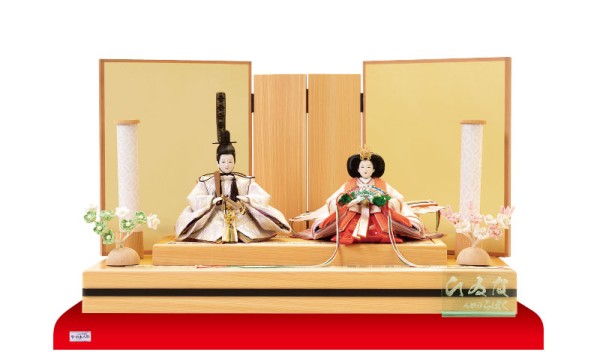 シンプルな金屏風でお雛様が引き立つおかざりです。