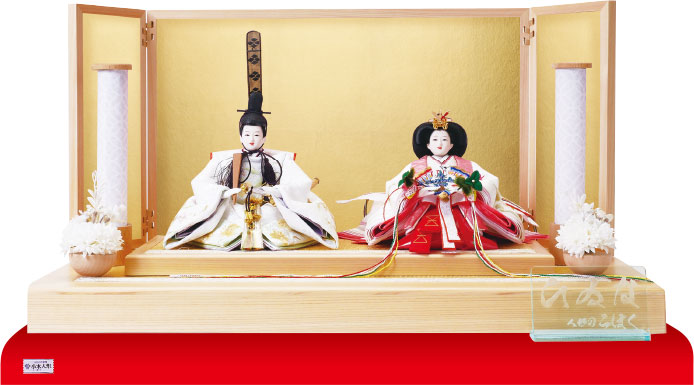刺繍と金の両面を楽しめる屏風が特徴の、飾り替えできる上品な雛飾りです。