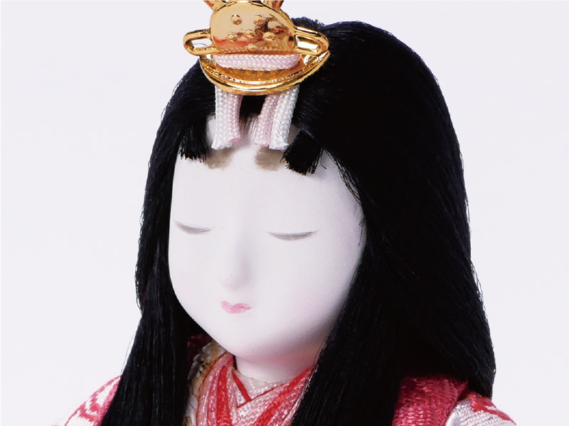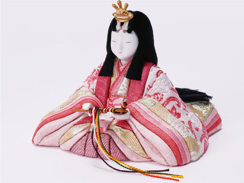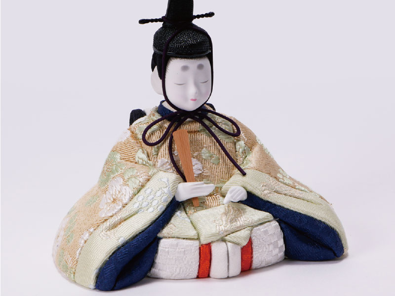 江戸時代に京都の「賀茂人形」として発祥した木目込人形。桐塑などの胴に金襴などをかぶせ胴のみぞにきめこんだ人形です。