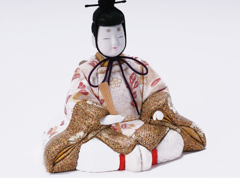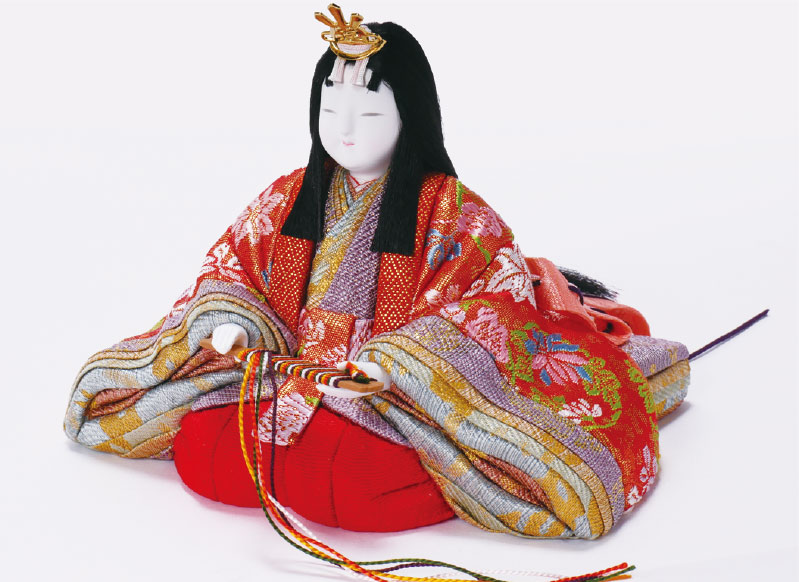 江戸時代に京都の「賀茂人形」として発祥した木目込人形。桐塑などの胴に金襴などをかぶせ胴のみぞにきめこんだ人形です。