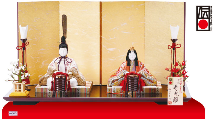 男雛は牡丹、女雛は梅・楓・藤・菊・牡丹を織り込んだ、