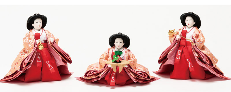 三人官女の衣裳は桜をあしらった可愛いお衣裳。
