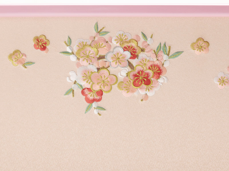 屏風と飾り台前板に同じ桜柄を刺繍して豪華に仕上げています。
