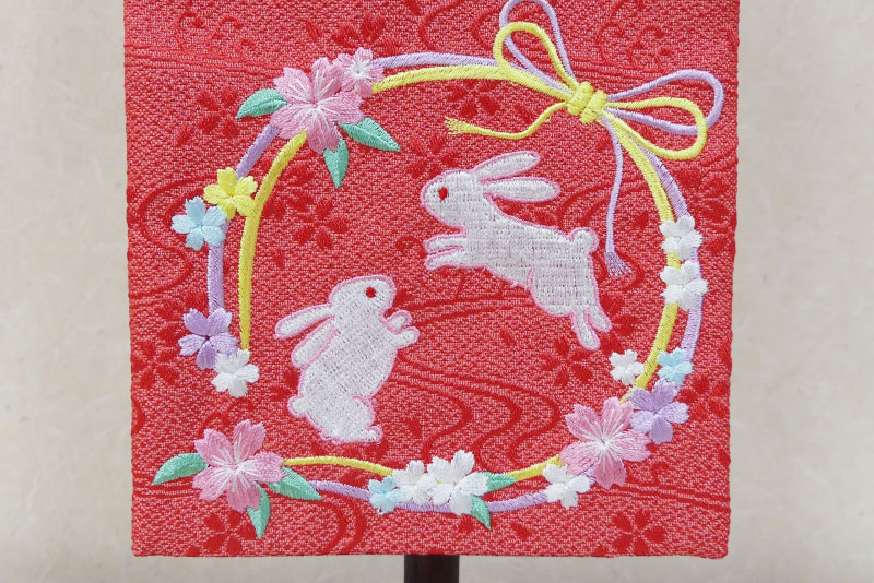 「飛躍」を象徴するうさぎと、丸く繋がるリースの形が幸せや縁起を呼び込むデザインです。