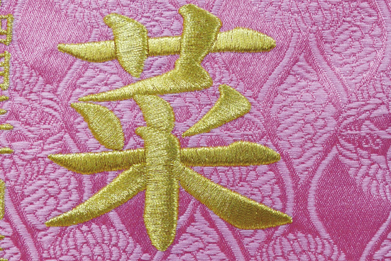 お子様のお名前と生年月日は、ピンク地に映える金色の刺繍で入ります。