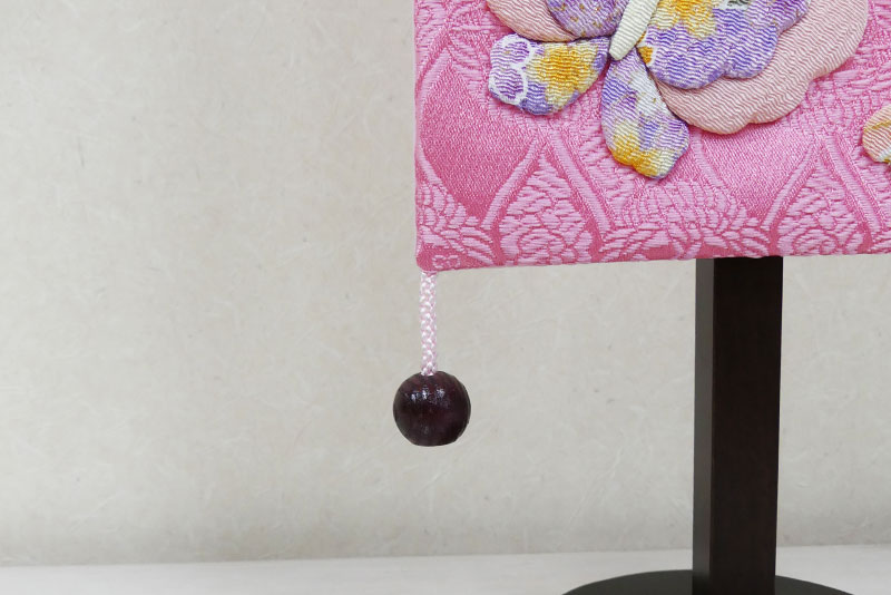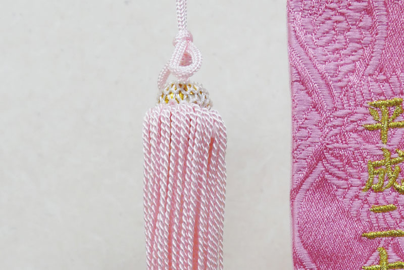 お名前旗を華やかに彩る飾りには、優しいピンク色の房と飾り玉があしらわれています。