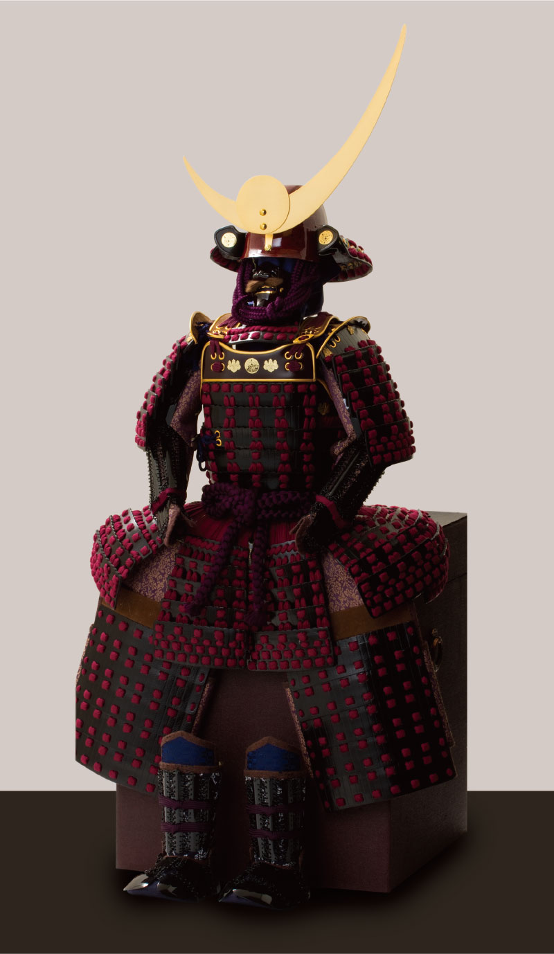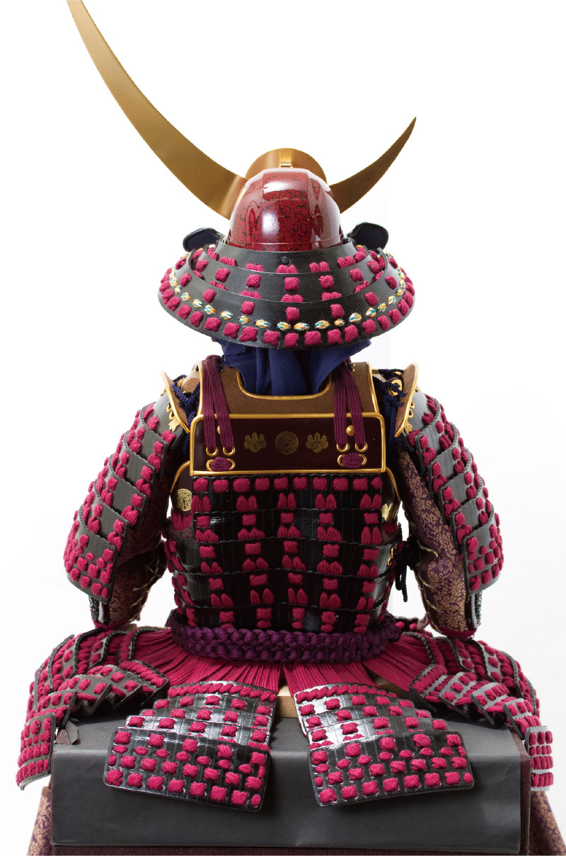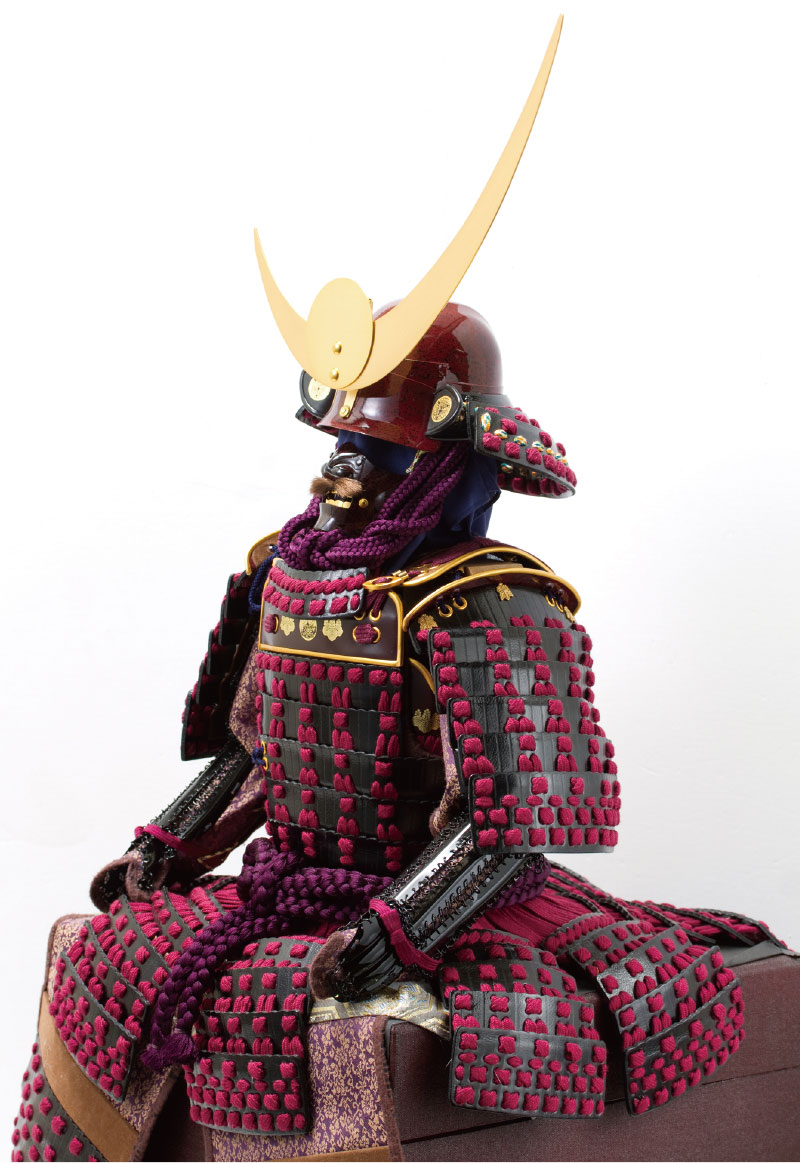 紫糸を使用し、鎧全体を牛革で仕上げています。