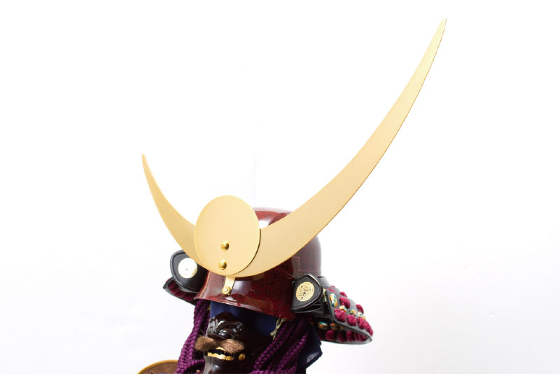 三日月と日輪で有名な日月の前立をつけた頭形の兜を使用。