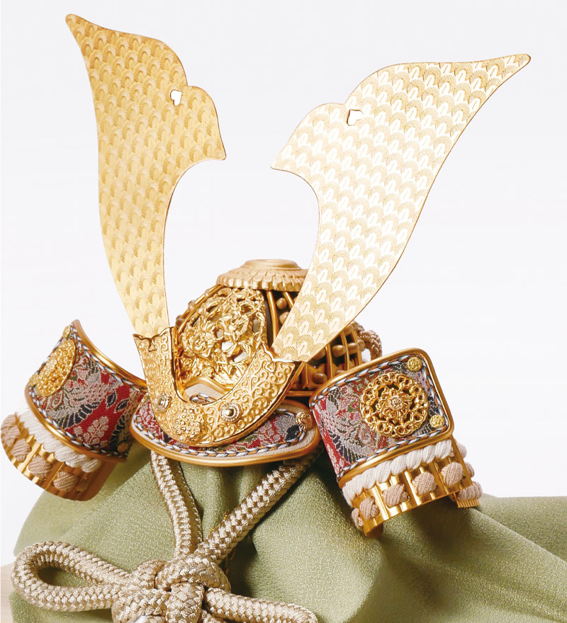 兜には龍村裂を使用し、立体的な正倉院文様の金具が施してあります。