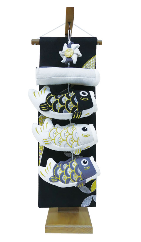 モノトーンの3匹の鯉。矢車や吹き流しも付いています。