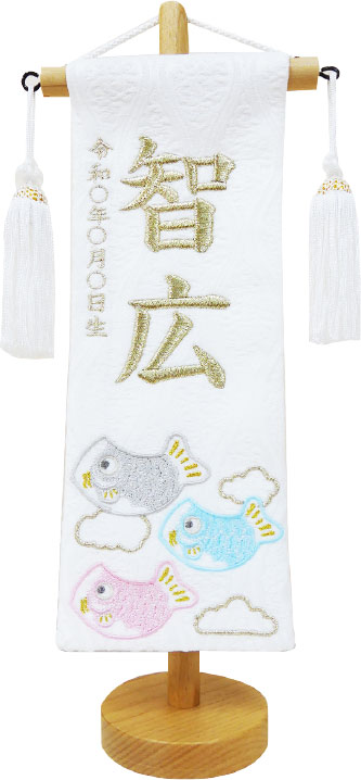 パステルカラーの3 匹の鯉をあしらったお名前旗です。