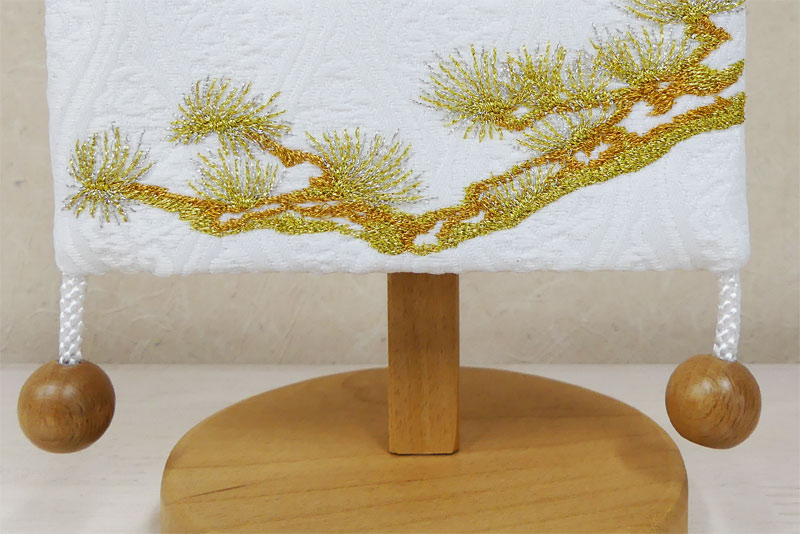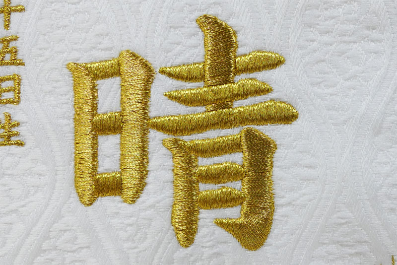 お子様のお名前と生年月日は、白地に映える金色の刺繍で入ります。