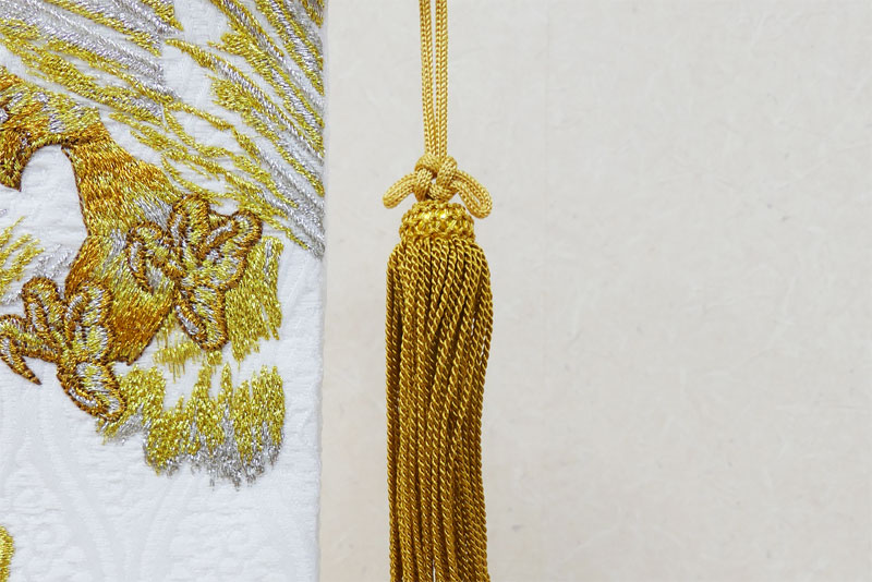 お名前旗を華やかに彩る飾りには、金色の房と飾り玉があしらわれています。