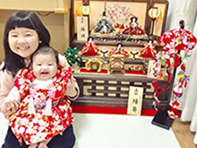 沙依ちゃん・希ちゃん - 毎年おひな様を出すのが楽しみです。